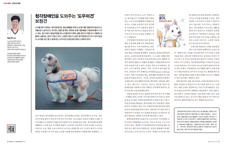 난청의 정도가 심한 청각장애인의 귀가 되어 일상의 소리를 대신 듣고 알려주는 도우미견 보청견에 대해 소개해 드리겠습니다.
